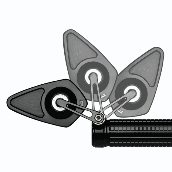 The mirror can be mounted both above or below the handlebar and is suitable for the right and left side. Mounting is directly on the end of the handlebar (22 mm and 1 inch) or if the grips and fittings can not be moved, using a mo.view bar adapter.