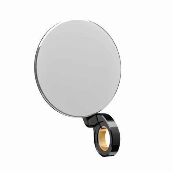 The mirror body, mirror arm and the clamp for the handlebar end are milled from solid aluminium on CNC machines and anodized to a high quality. All screws are made of stainless steel. The precise ball joint allows the mirror to be adjusted comfortably and very stably. Glass breakage or glass falling out is simply not possible!