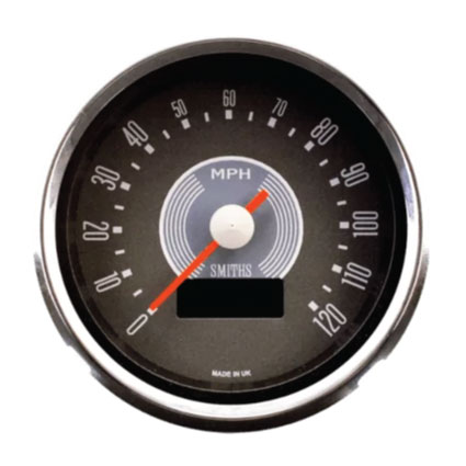 Smiths Classic grey face 82mm (3in) Speedometer with odo or trip readout and onboard “drive-to-set” programming. Features our new billet case with OLED display, LED lighting and is waterproof to IP67.